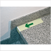 Bei diesen Sicherheitsleitsystemen handelt es sich um fluoreszierende Markierungen aus Aluminium, die auf dem Fußboden, dem unteren Bereich der Wände (Oberkante: 40 cm über dem Fußboden) oder den Treppenkanten angebracht werden.