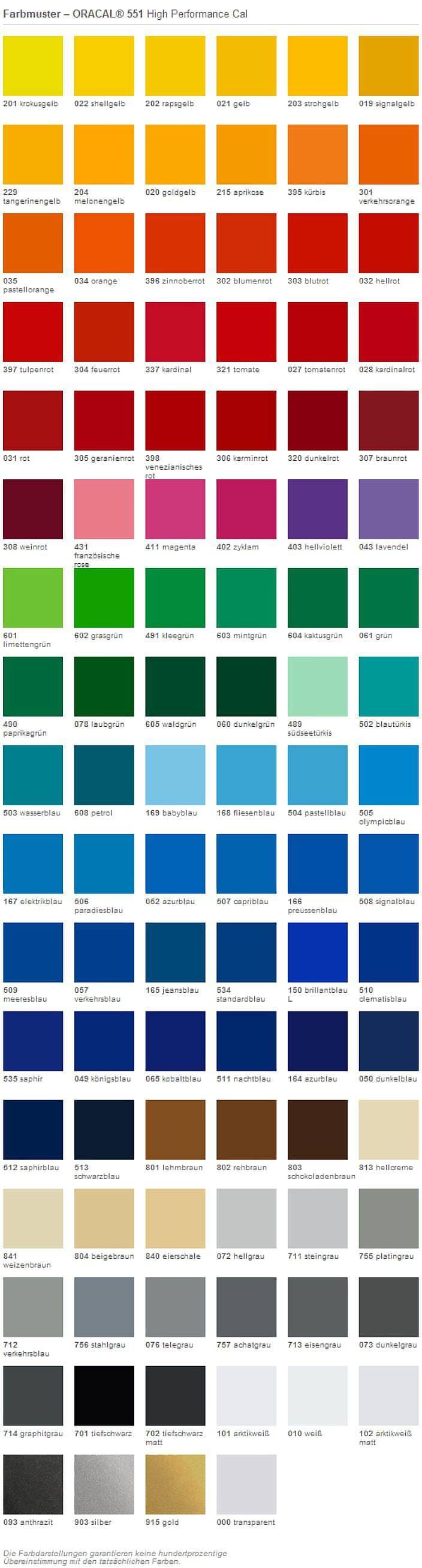 Folie Oracal Serie 551 High Performance Cal, Hochglanz geeignet für Fahrzeugbeschriftungen und langfristige Dekozwecke.